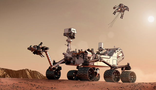 À bord du rover se trouvent des instruments d’analyse à distance, des instruments de contact, un bras articulé, dix-sept caméras, des instruments de caractérisation environnementale, ainsi que deux véritables laboratoires d’analyses chimiques embarqués. Ce parc instrumental permettra à Curiosity de procéder à une analyse exhaustive de l’environnement, de l’atmosphère et du sol martiens. L’avenir est en Mars !
